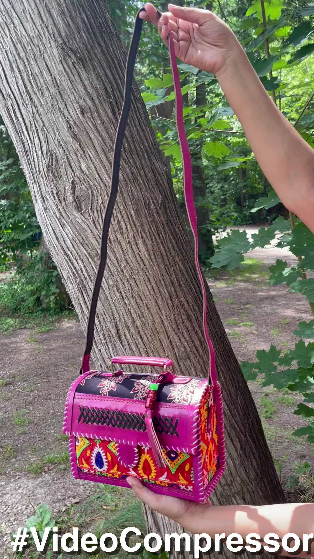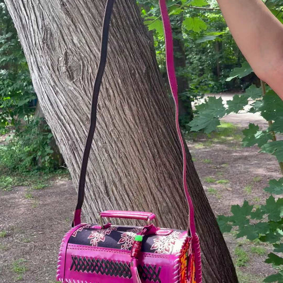 The Hand-Embroidered Leather Box Sling - Hot Pink